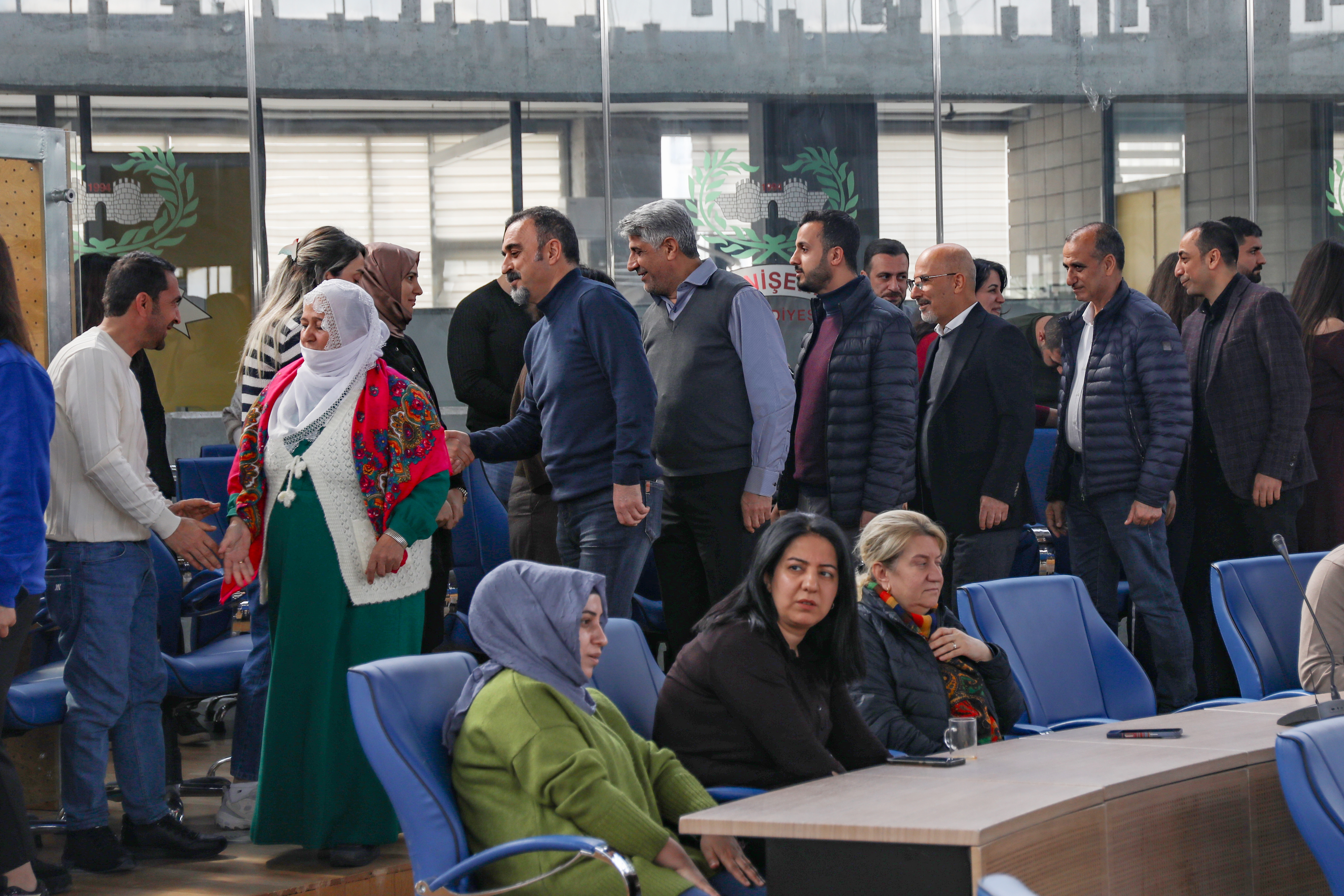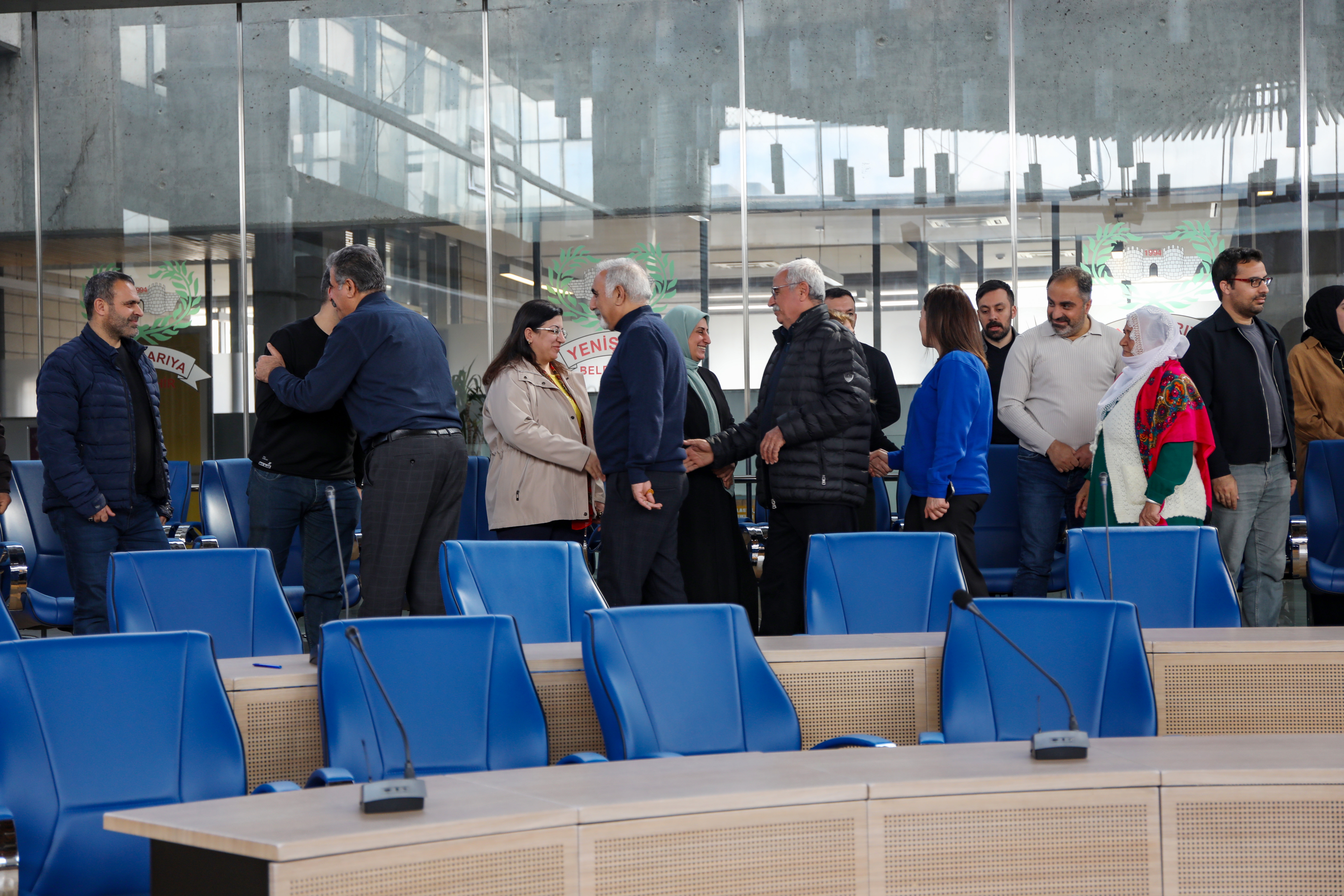 Eşbaşkanımız Mehmet Ergün, eşbaşkan yardımcılarımız ve meclis üyelerimiz, belediye hizmet binasında görevli çalışanlarla belediye meclis salonunda tek tek bayramlaştı.