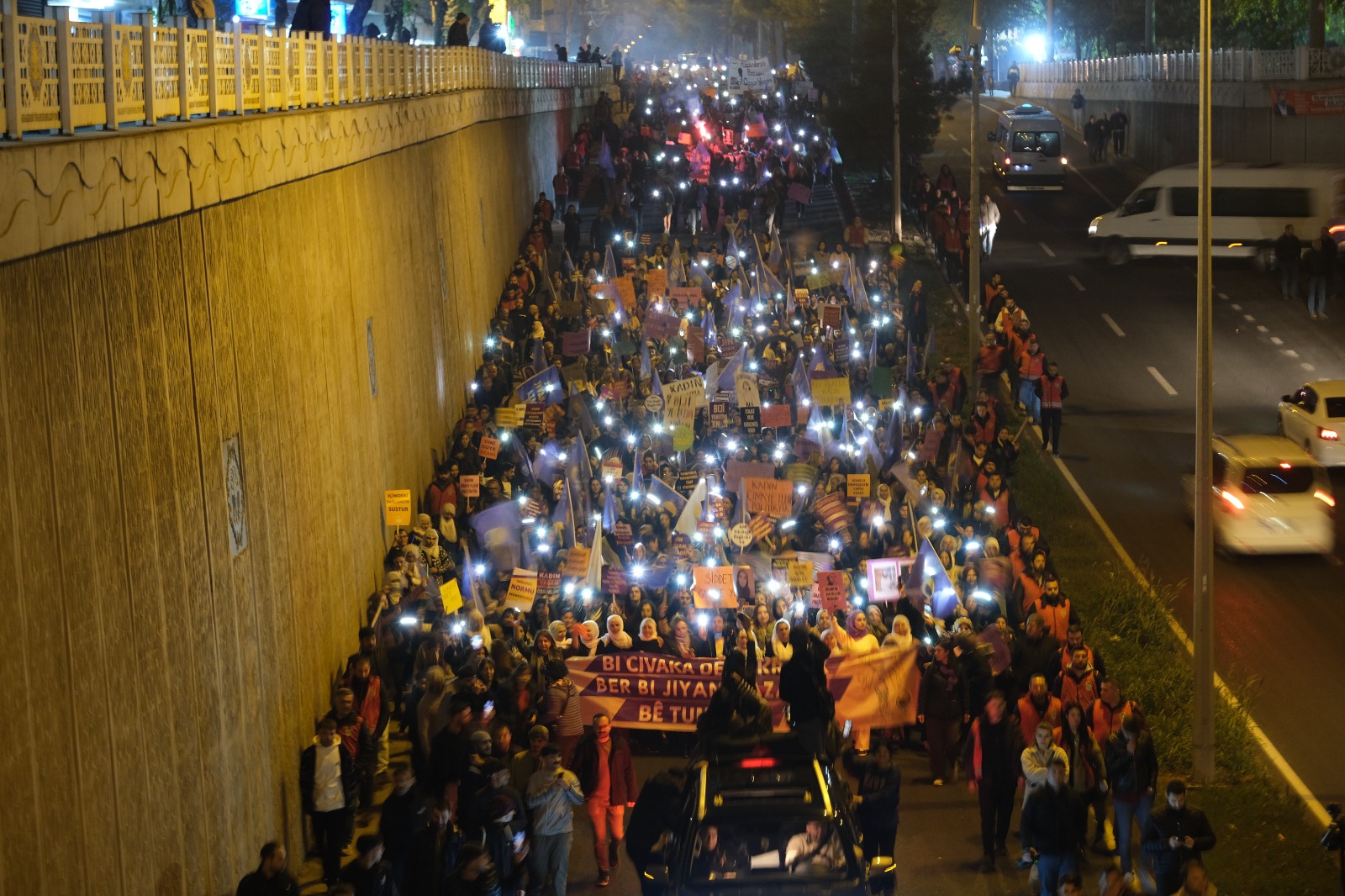 Tora Têkoşîna li Dijî Tundiyê ya Amedê û Platforma Jinên Dîcleyê ya Amedê (DAKAP), bi boneya 25’ê Mijdarê Roja Têkoşîna Navneteweyî ya li Dijî Tundiya li ser Jinan, bi dirûşma “Bi Civaka Demokratîk re Jiyana Azad a Bê tundî” meşek lidar xistin.
