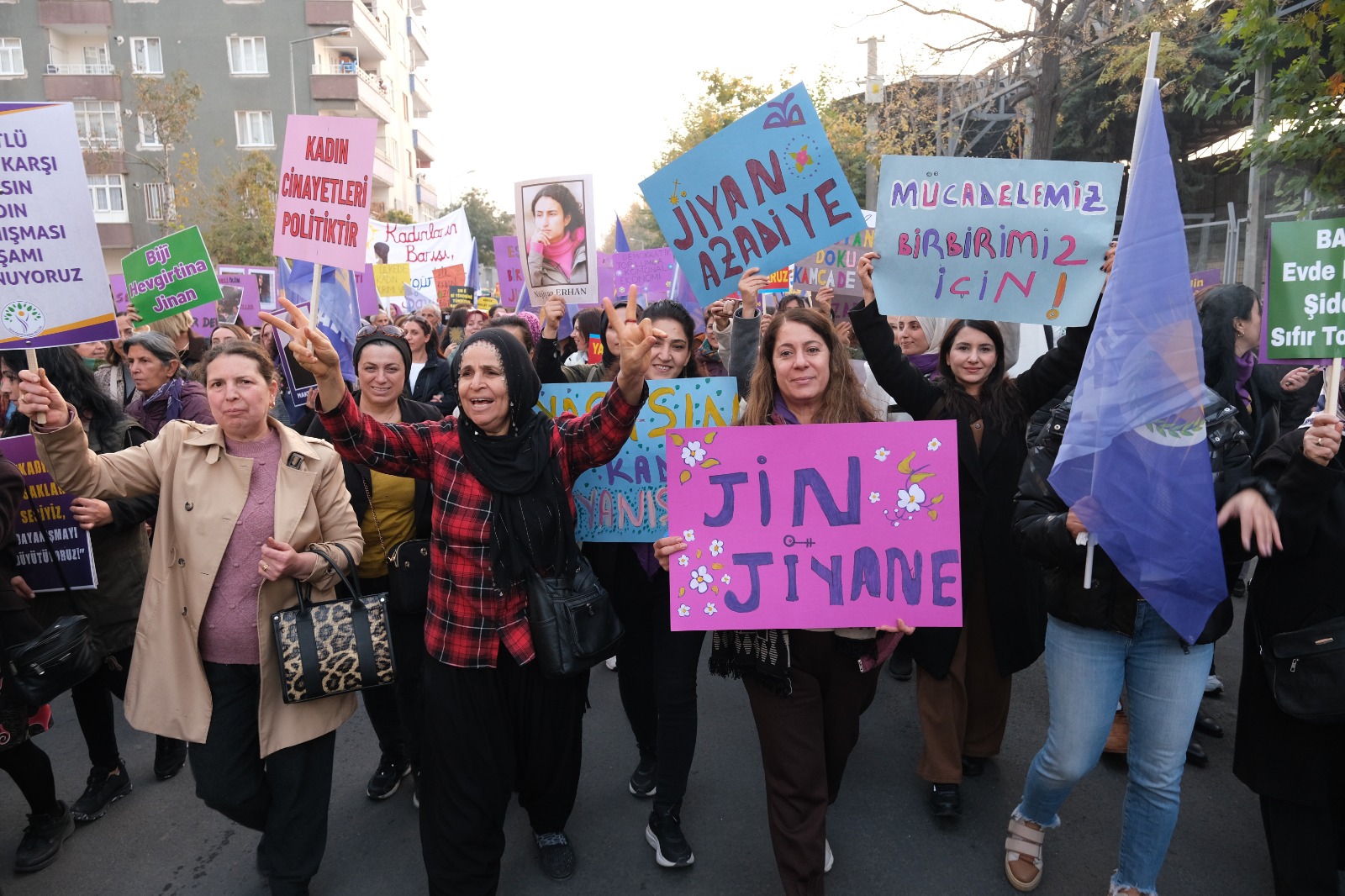 Diyarbakır Şiddetle Mücadele Ağı ve Dicle Amed Kadın Platformu (DAKAP), 25 Kasım Kadına Yönelik Şiddete Karşı Uluslararası Mücadele Günü dolayısıyla, "Demokratik Toplumla Şiddetsiz Özgür Yaşama" temasıyla yürüyüş düzenledi.