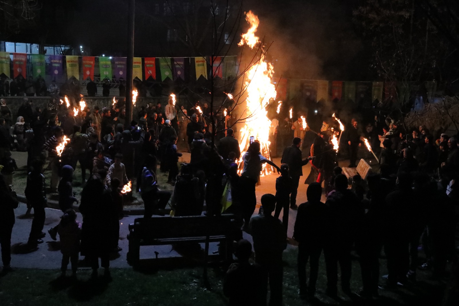 Meşalelerle alana yapılan giriş, renkli görüntülere sahne oldu. Açılış konuşmalarının ardından kutlama, Newroz ateşi etrafında çekilen coşkulu halaylarla sona erdi.
