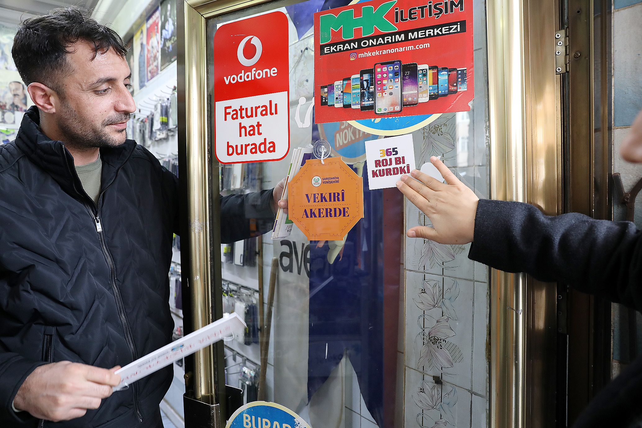 Şehitlik Caddesi’ndeki işyerlerinin kapılarına, Kürtçe ve Zazaca “Vekirî- Girtî”, “Akerde-Girewte” (Açık- Kapalı) ile “Hûn Bi Xêr Hatin” (Hoşgeldiniz) yazılarının yer aldığı kapı tabelaları asıldı.