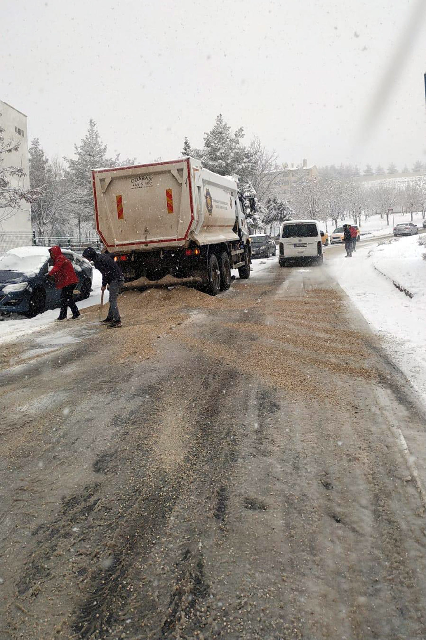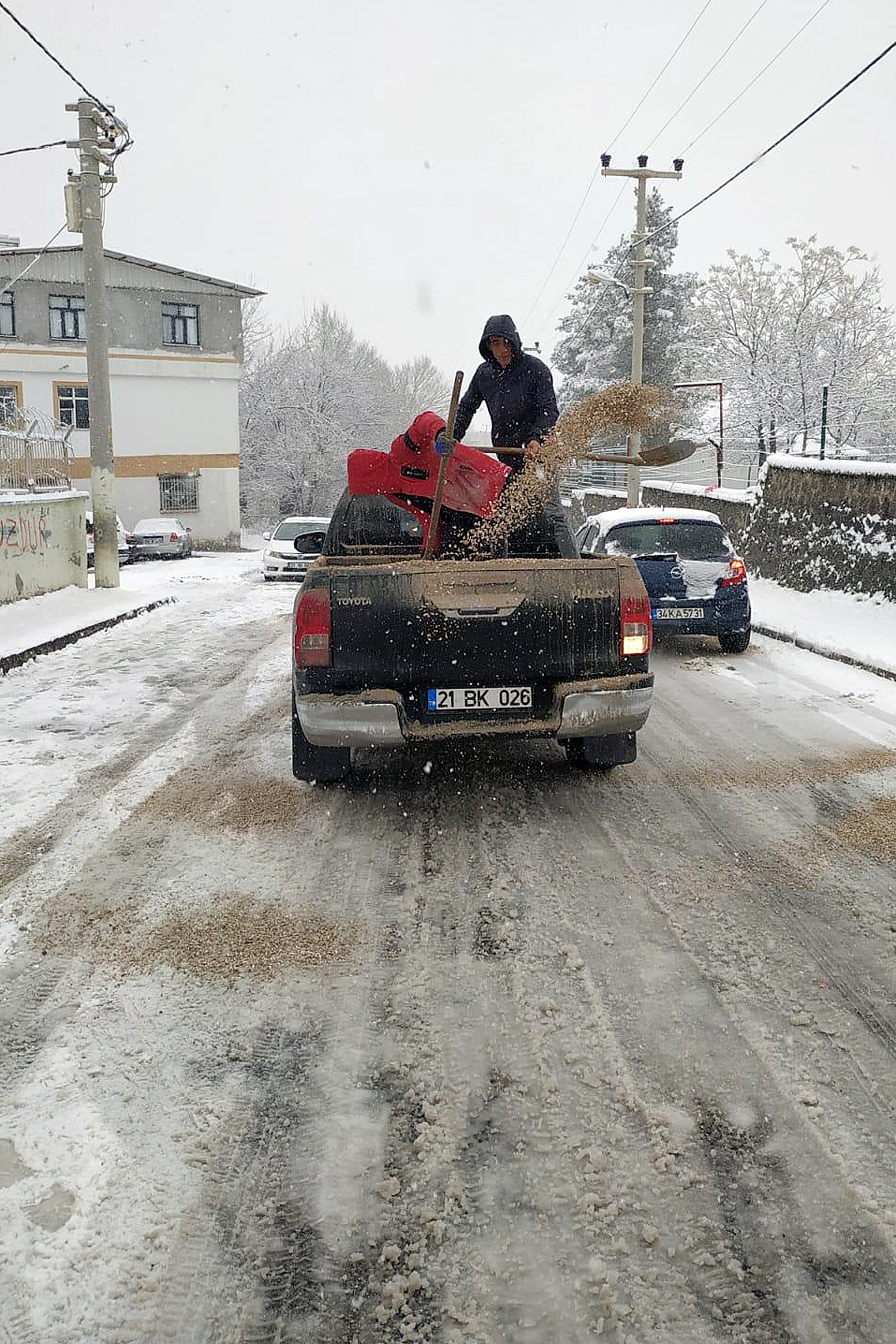 Gürdoğan, Yolaltı, Aziziye, Üçkuyu ve Feritköşk mahallelerinde yollar ulaşıma açık tutulurken; kar temizleme ve tuzlama çalışmaları eş zamanlı olarak devam ediyor.