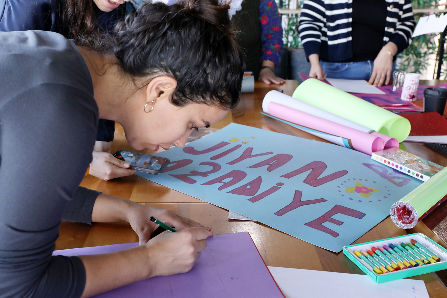 Ortak dayanışma ile hazırlanan dövizler, 8 Mart etkinliklerinde alanlarda taşınarak kadınların güçlü sesine eşlik edecek.