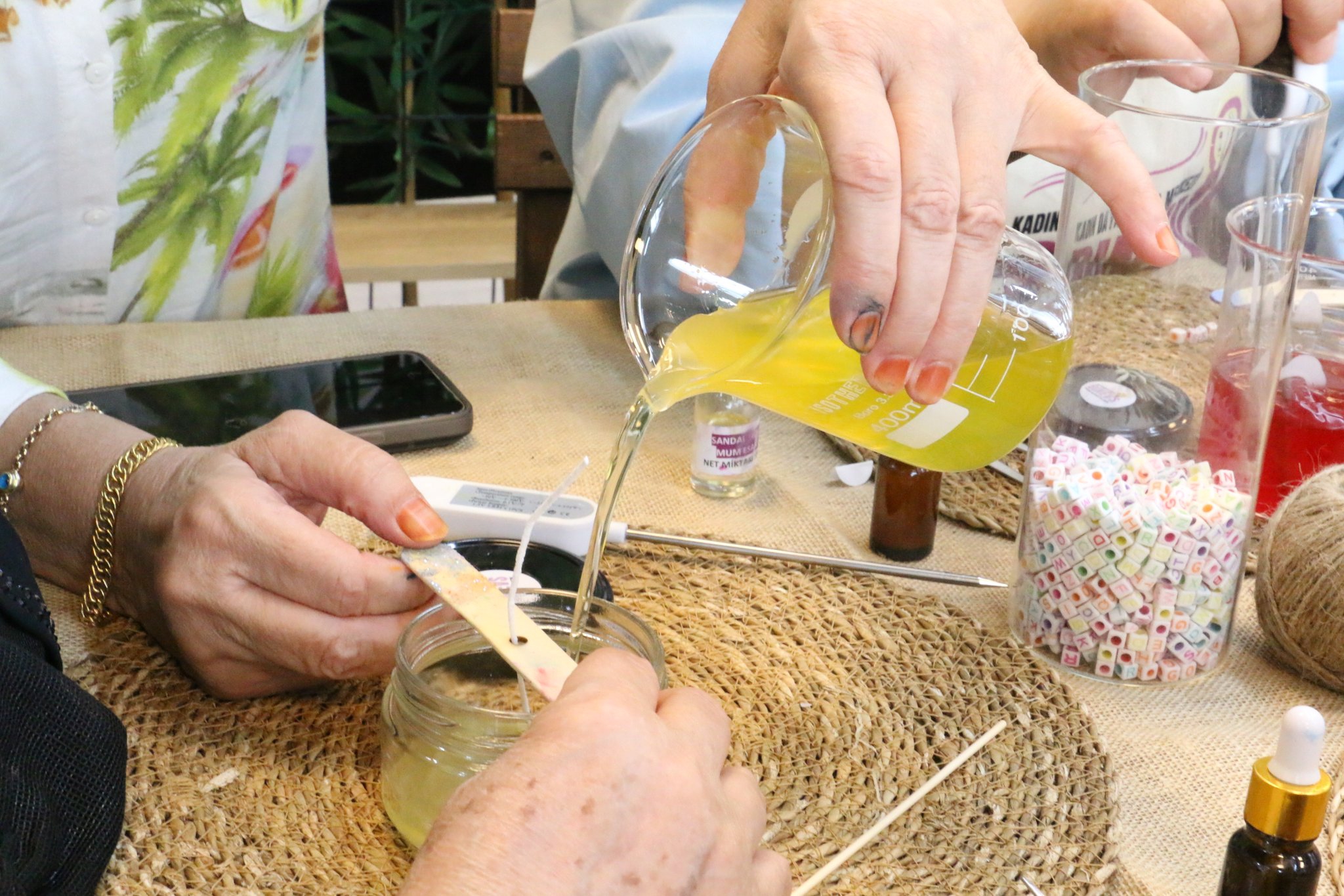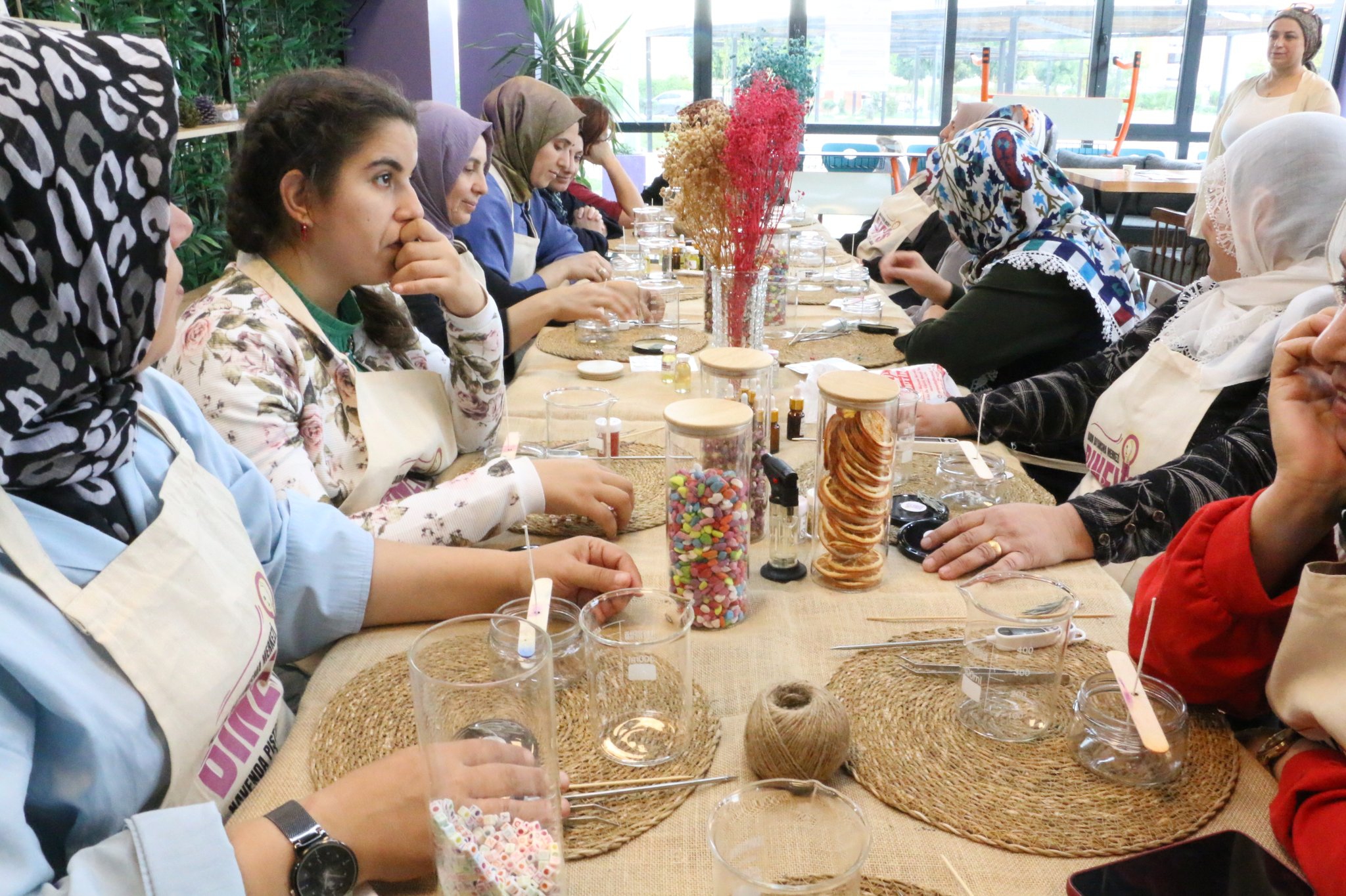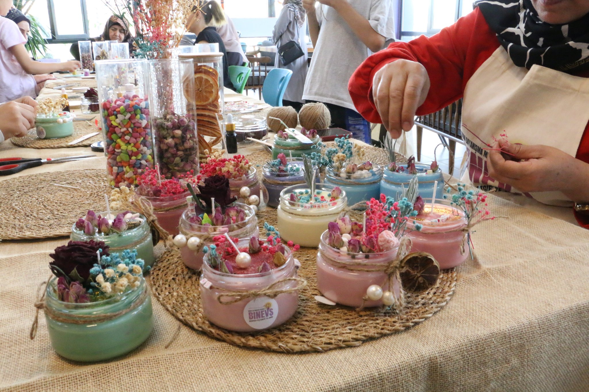 Atölye kapsamında kadınlar el becerilerini geliştirerek farklı tasarımlarda mumlar üretti.