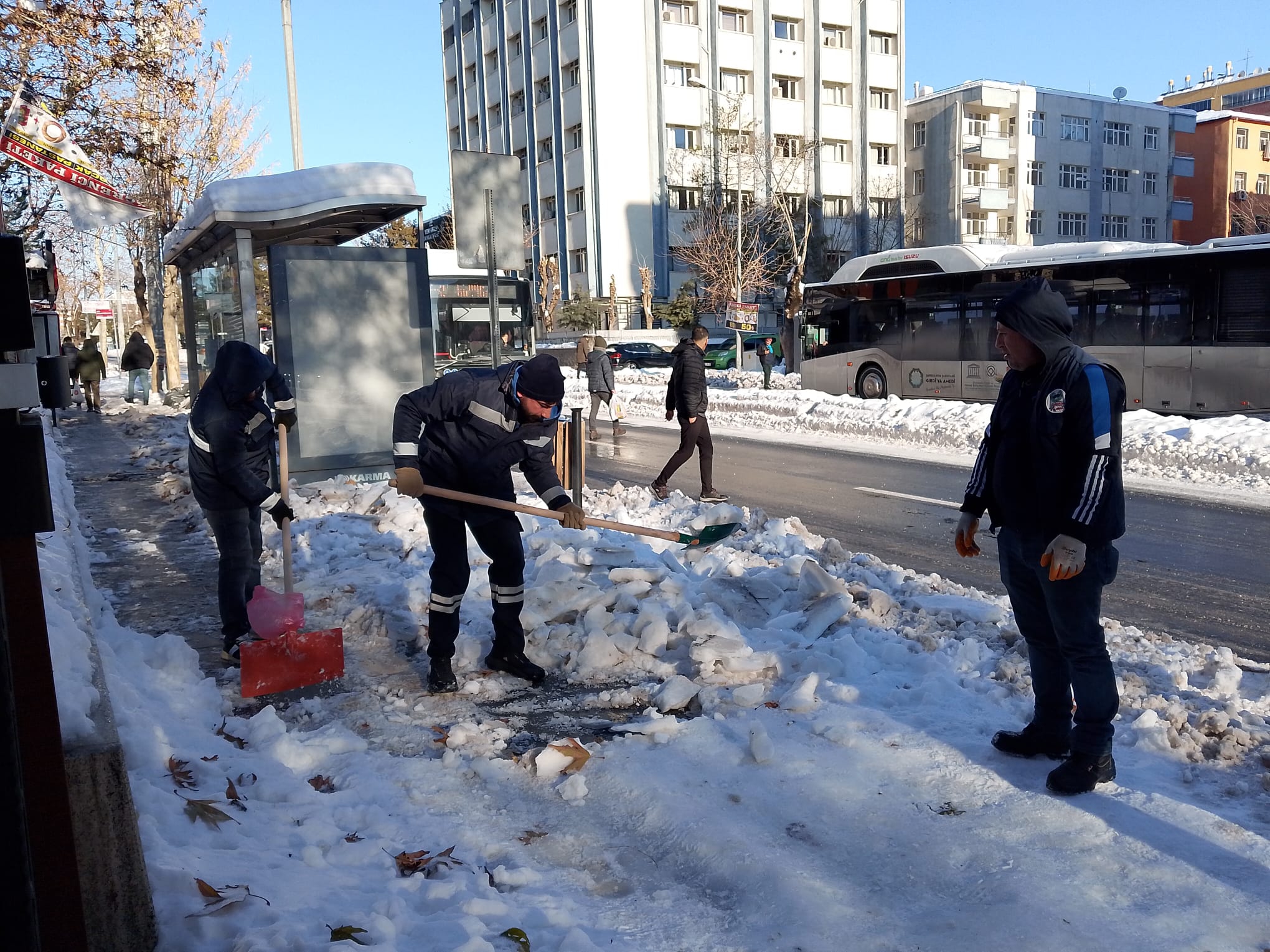 Bu çalışmalar kapsamında, sokak ve kaldırımlarda biriken karlar temizlenirken, buzlanmaya karşı tuzlama çalışmaları yapılarak araç ve yaya ulaşımı güvenli hale getiriliyor.