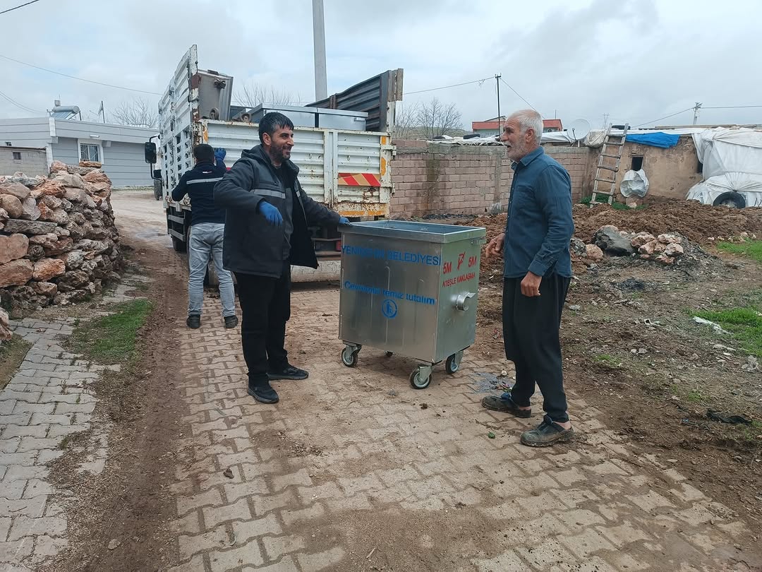 Tîmên me yên Rêveberiya Dabînkirina Makîne û Amûran, karên lênêrîn, tamîrkirin û guhertina konteynerên çopê yên li taxên gundewarî yên Çakmak, Terziyan, Ekinciler, Ulular, Tîlhan û Hantepe temam kirin.