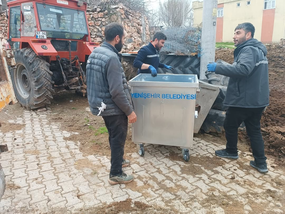 Di çarçoveya van lêkolînan de, konteynerên çopê yên kevin û deforme yên li taxan bi konteynerên nû yên ku ji hêla Şîrketa Yapi, Înşaat û Teahûdê ya Yenişehirê ve, ku bi Şaredariya me ve girêdayî ye, hatine hilberandin, hatin guhertin.