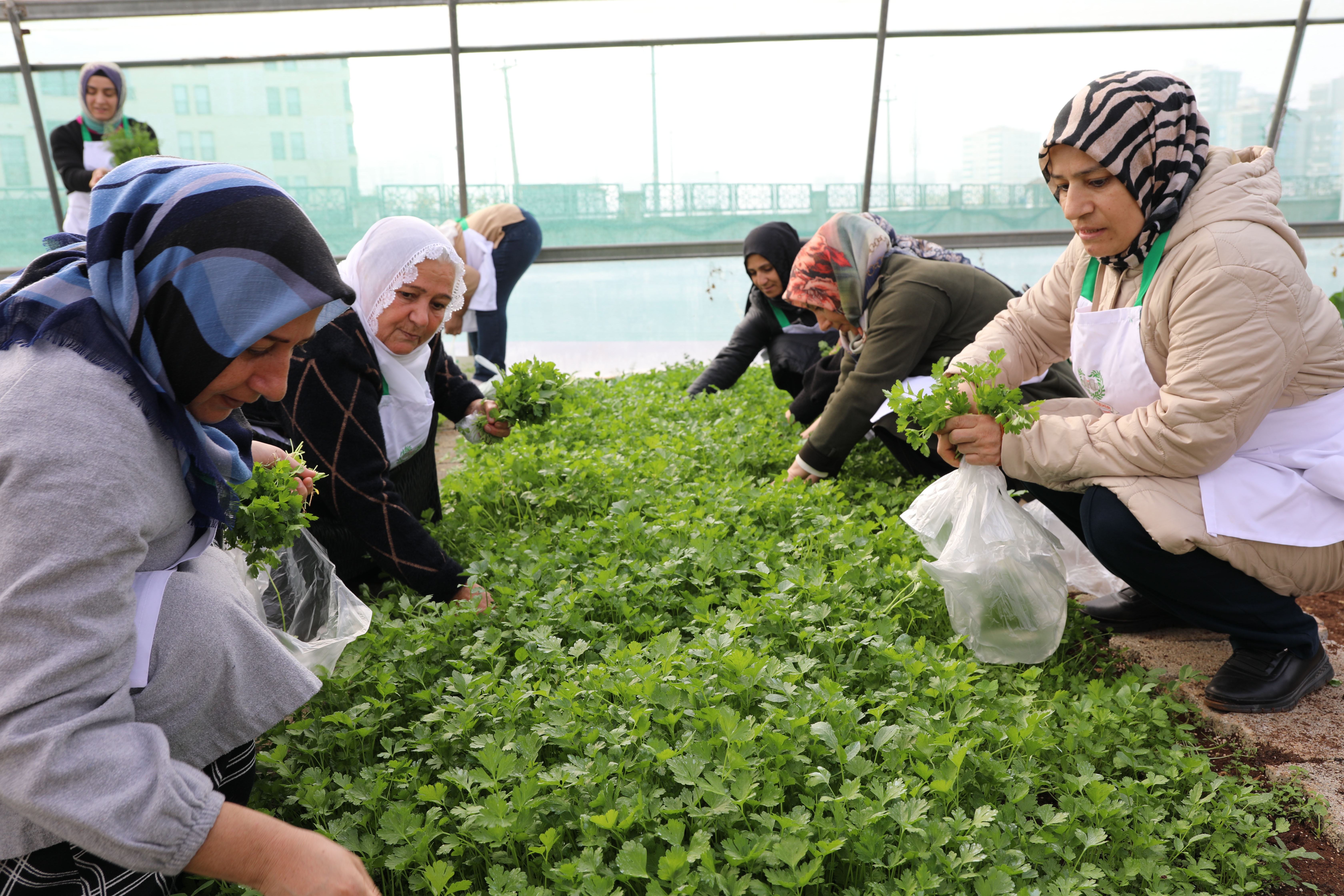 Kış çayının demlenmesi sırasında ayrıca kadınlar, seramızdaki tavlalarda yetiştirilen maydanoz, roka, tere, dereotu, ıspanak ve reyhan hasadını yaptı.
