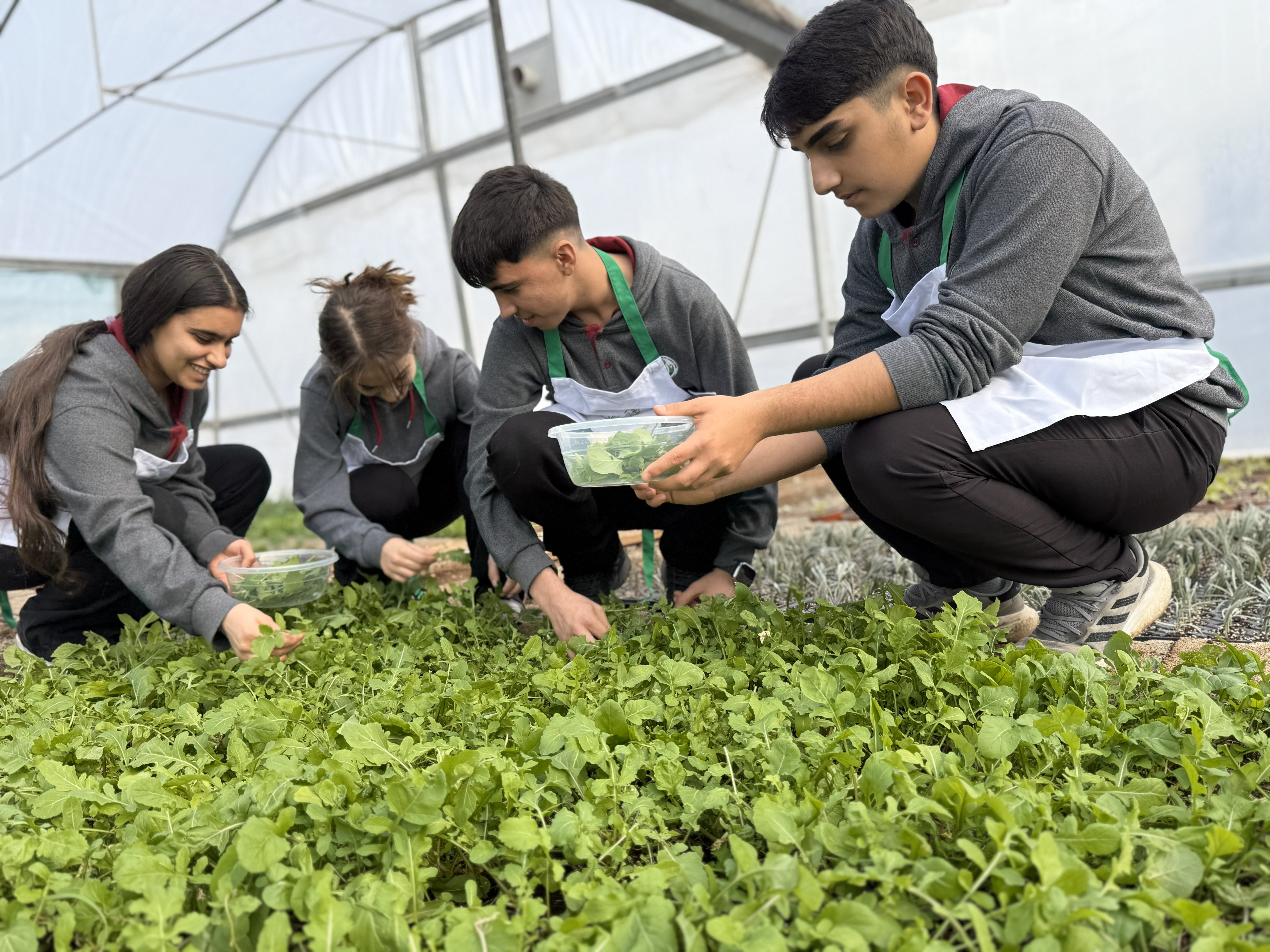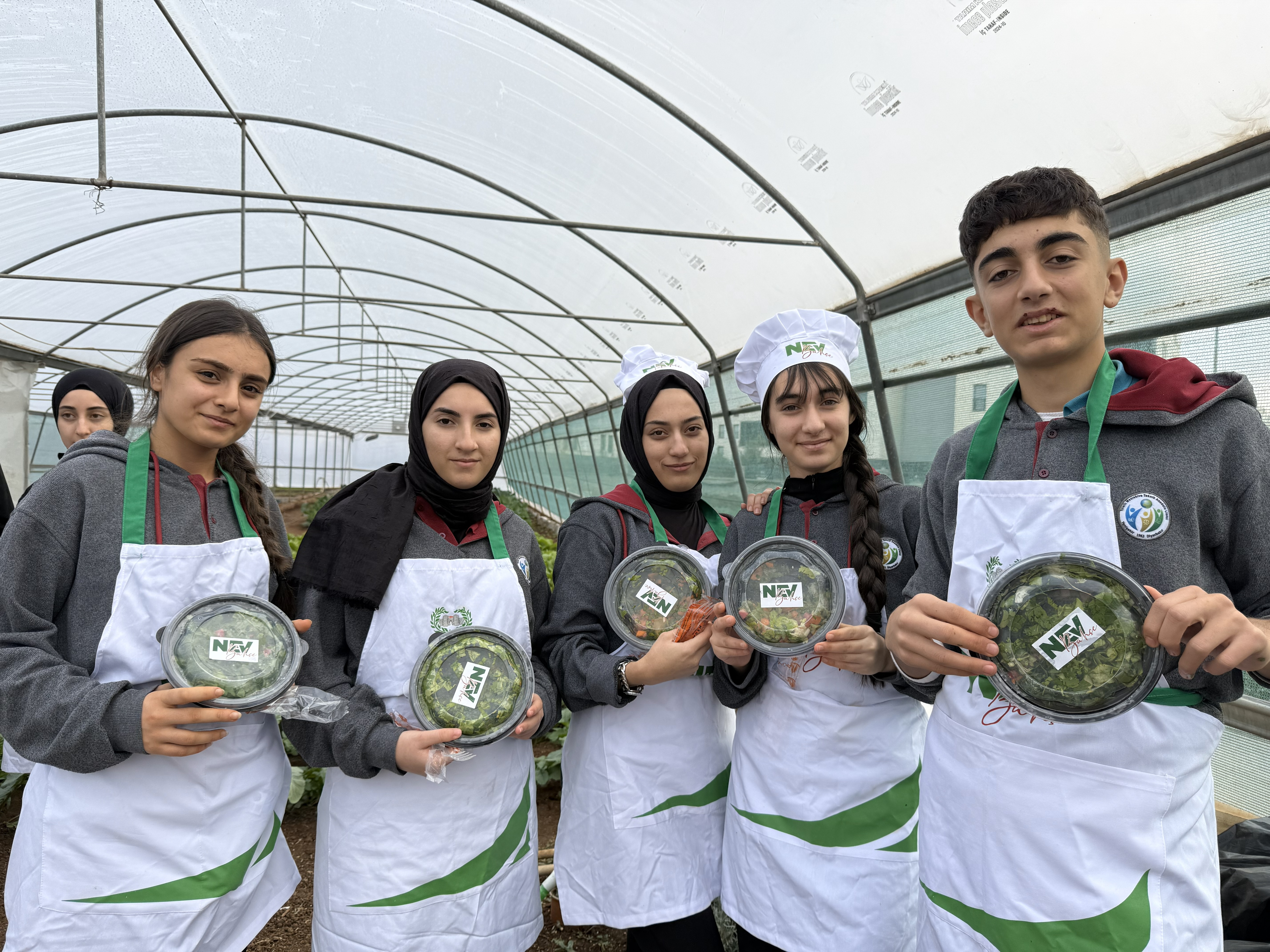 Öğrenciler, topladıkları bu taze ürünlerle kendi salatalarını hazırladı; sağlıklı beslenme, gıda israfının önlenmesi, ekip çalışması ve üretim süreçlerini deneyimledi.