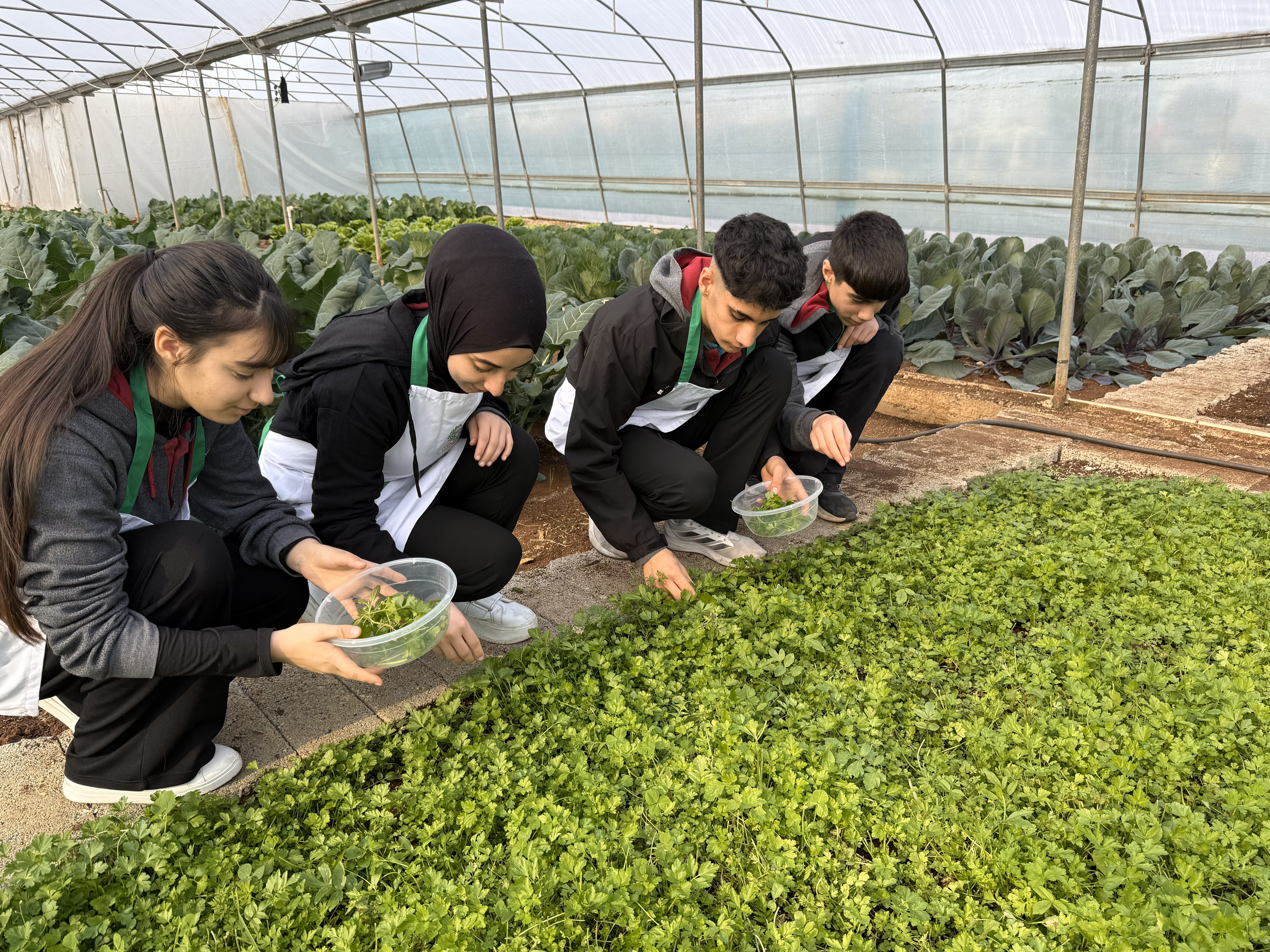 Di atolyeyê de, bi mijara "Ji Axê Berbi Pêjgehê ve", xwendekaran bi kêfxweşî sebze û sebzeyên zivistanê li serayê me, ku di nav xwezayê de bû, berhev kirin.