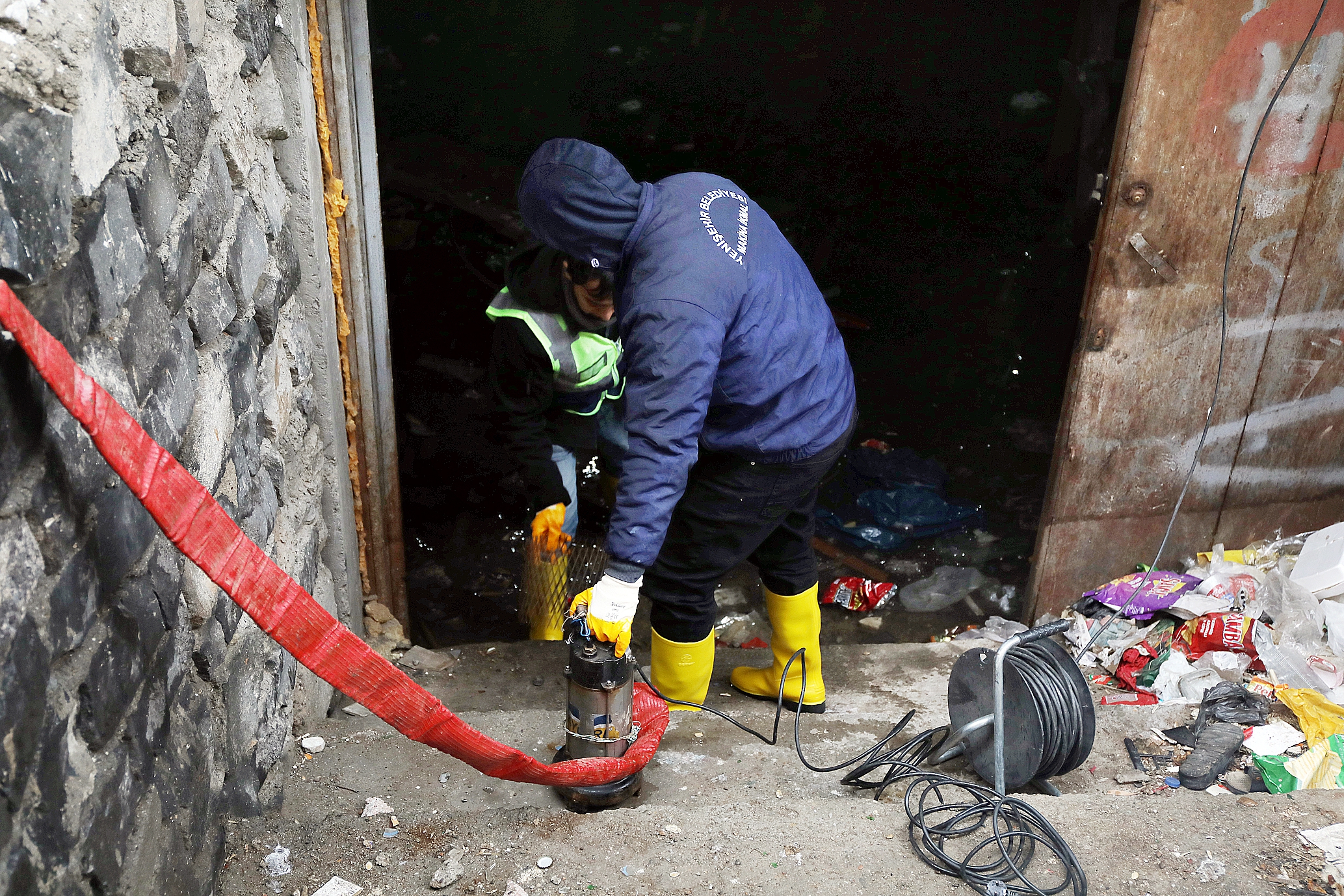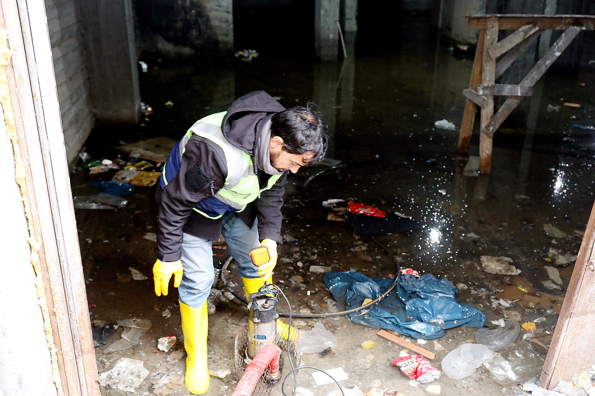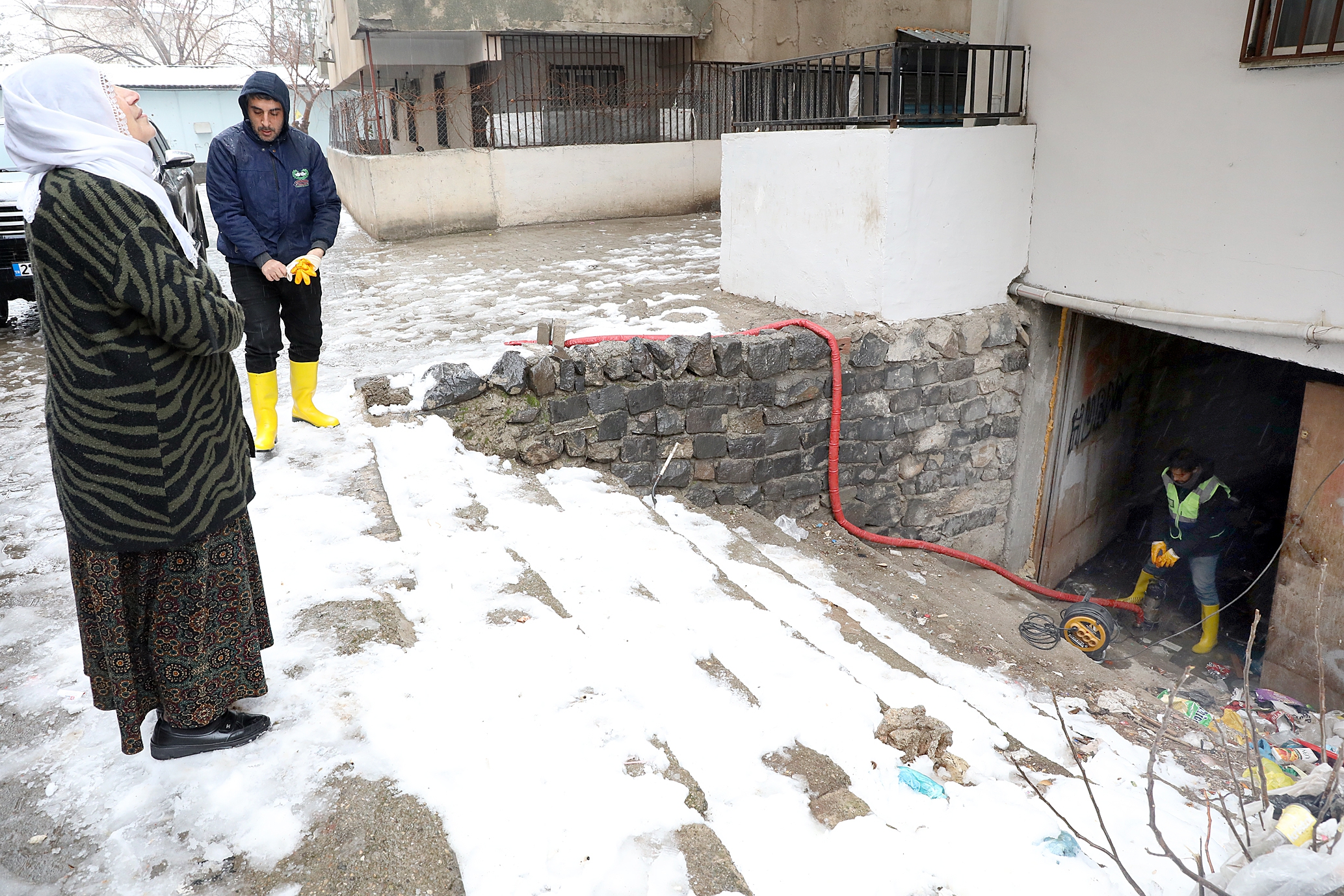 Tîmên me yên Rêveberiya Dabînkirina Makîneyê li jêrzemîna avahiya Bekmez 1 a li Taxa Şehîtlîkê, ku ji ber helandina berf û ava baranê av kom bûbû, mudaxele kirin.