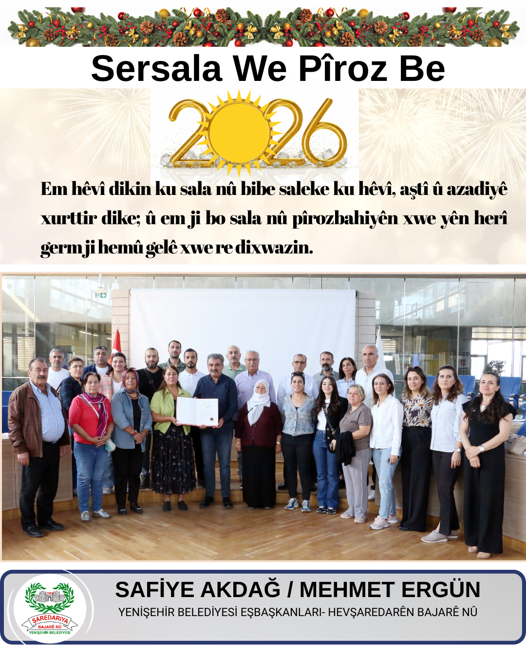 Em hêvî dikin ku sala nû bibe saleke ku hêvî, aştî û azadiyê xurttir dike; û em ji bo sala nû pîrozbahiyên xwe yên herî germ ji hemû gelê xwe re dixwazin.