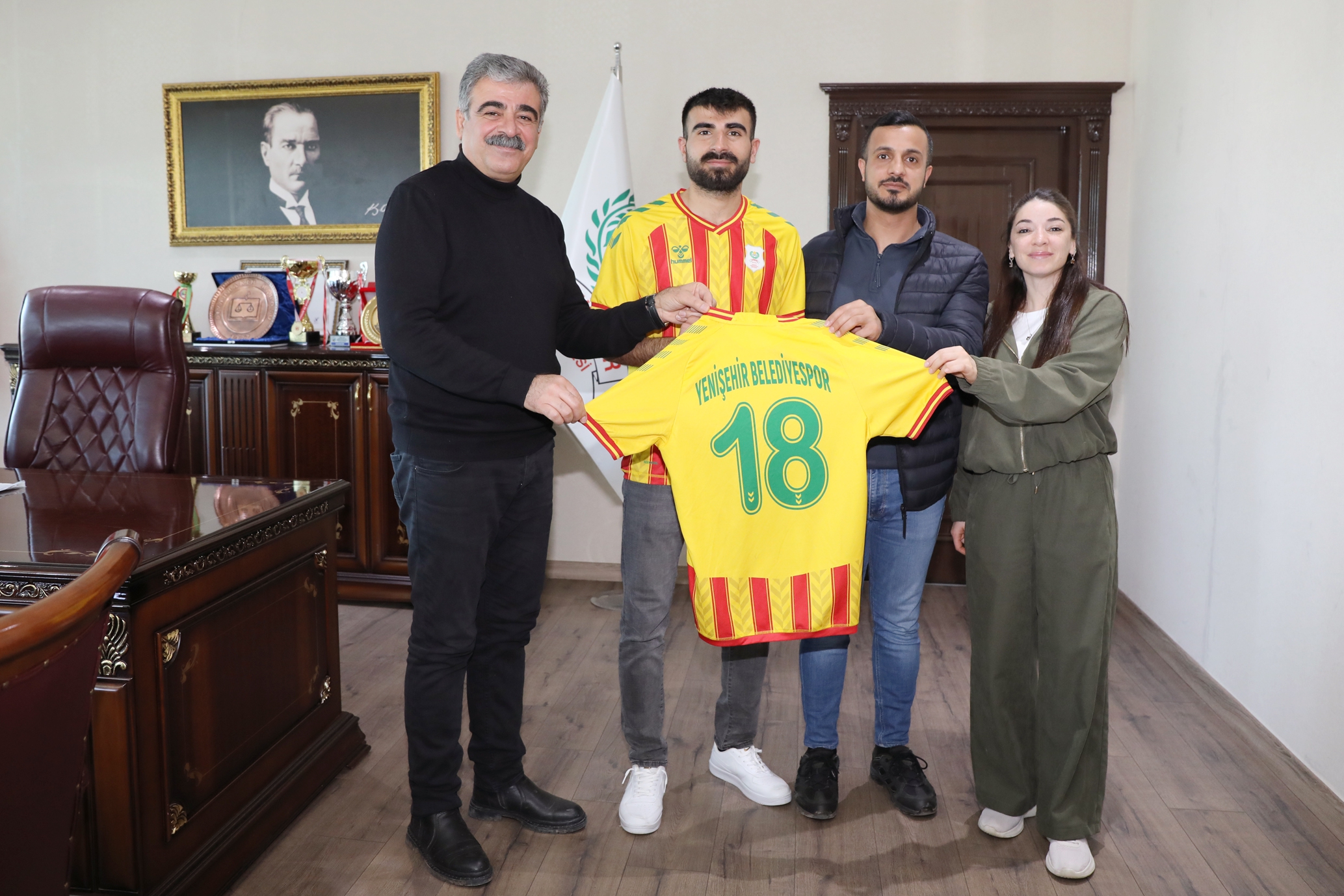 Serokê Klûba Sporê ya Şaredariya Yenîşehîrê Ahmet Aslan, rêveberê klûbê Şaban Esen, rêveberê teknîkî yê Tîma Futbolê ya A'yê Hacı Aktaş û lîstikvan beşdarî serdanê bûn.