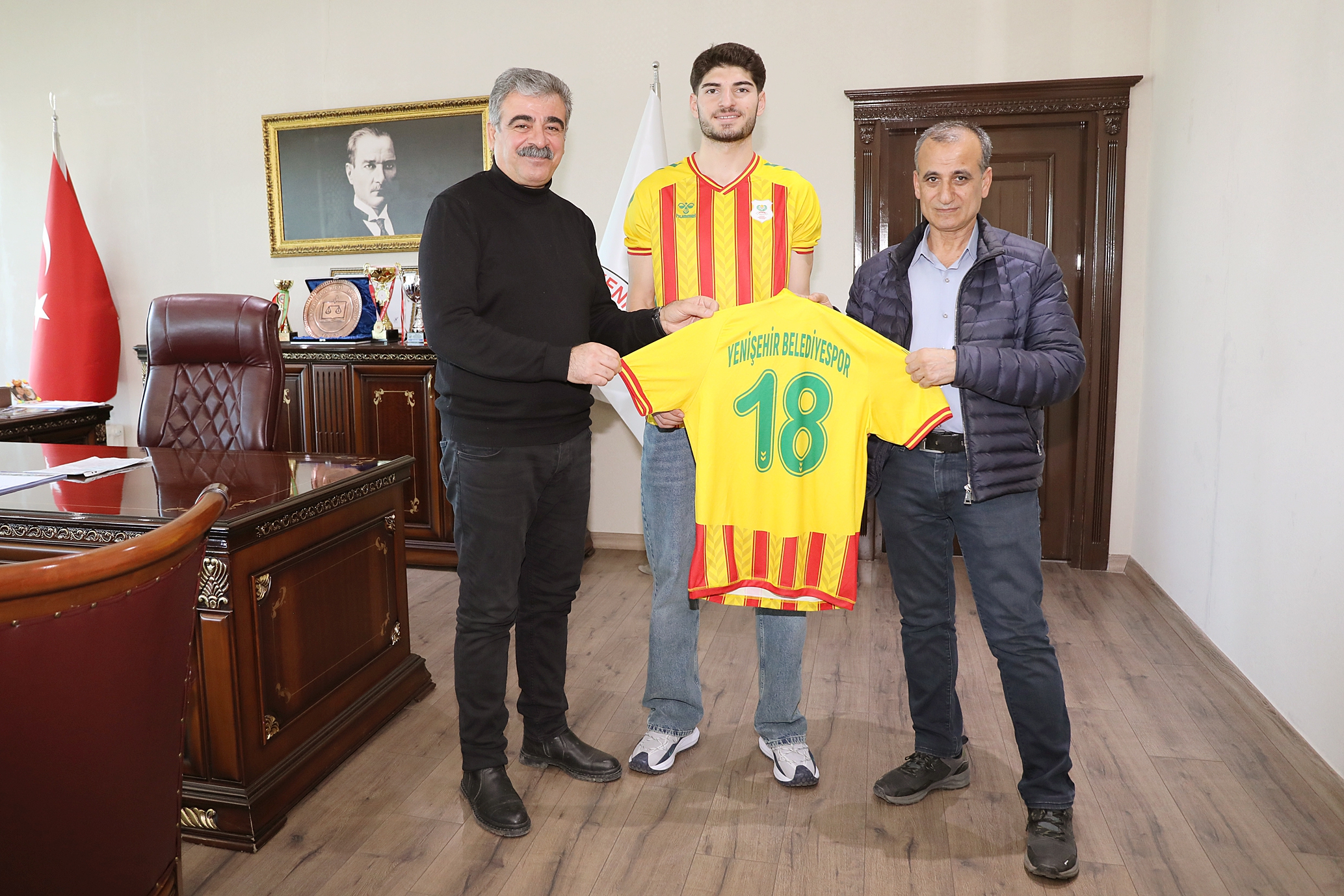Ziyarette, Yenişehir Belediyesi A Futbol Takımı’nın devre arasında transfer ettiği oyuncular tanıtıldı.
