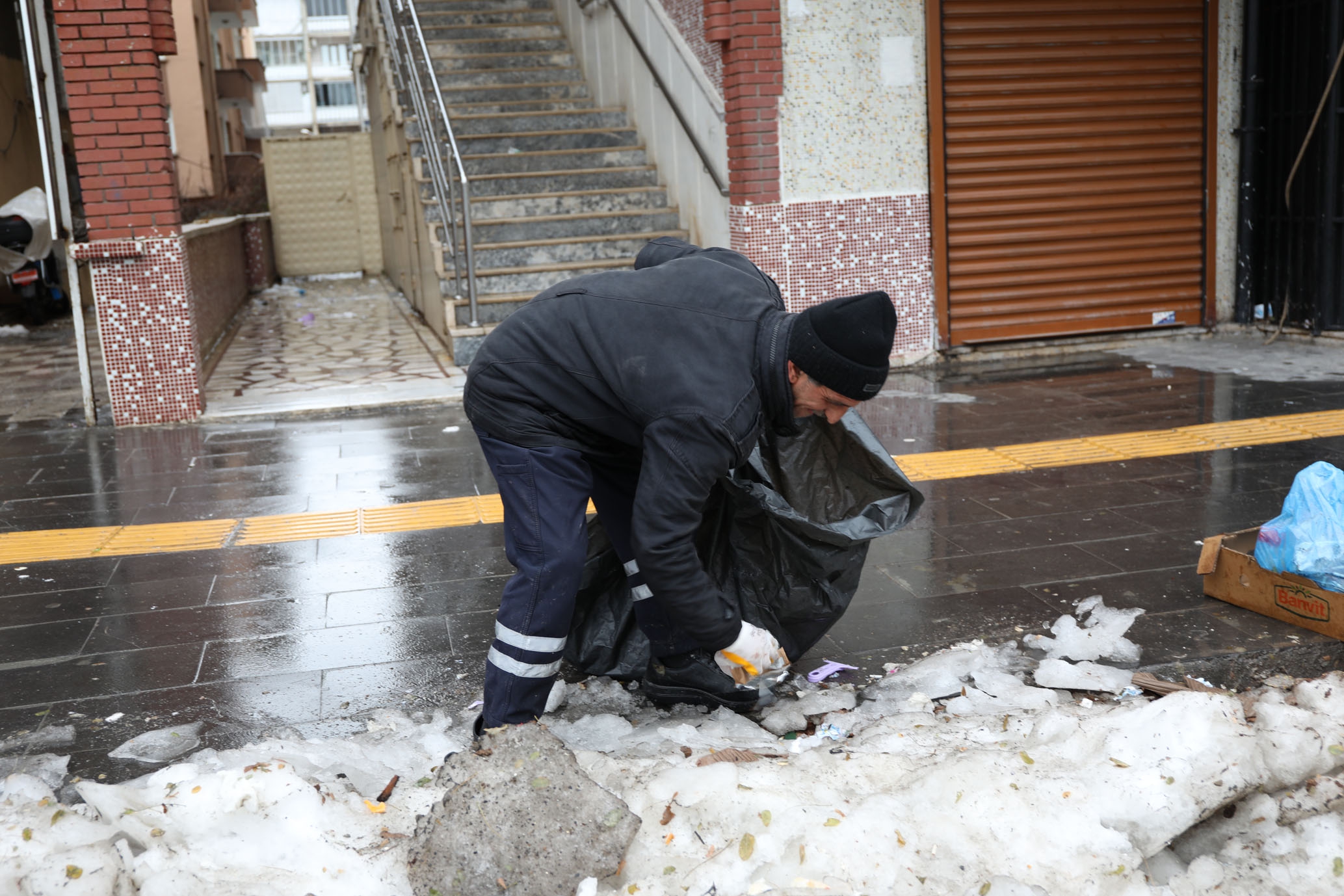 Tîmên me bi berdewamî girên berfê yên li ser rê, kolan û peyarêyên taxê kom bûne li navçeya me berhev dikin û bar dikin, di heman demê de bermahî û zibilên ku dibe ku di bin berfê de bimînin û bibin sedema qirêjiya jîngehê jî berhev dikin.
