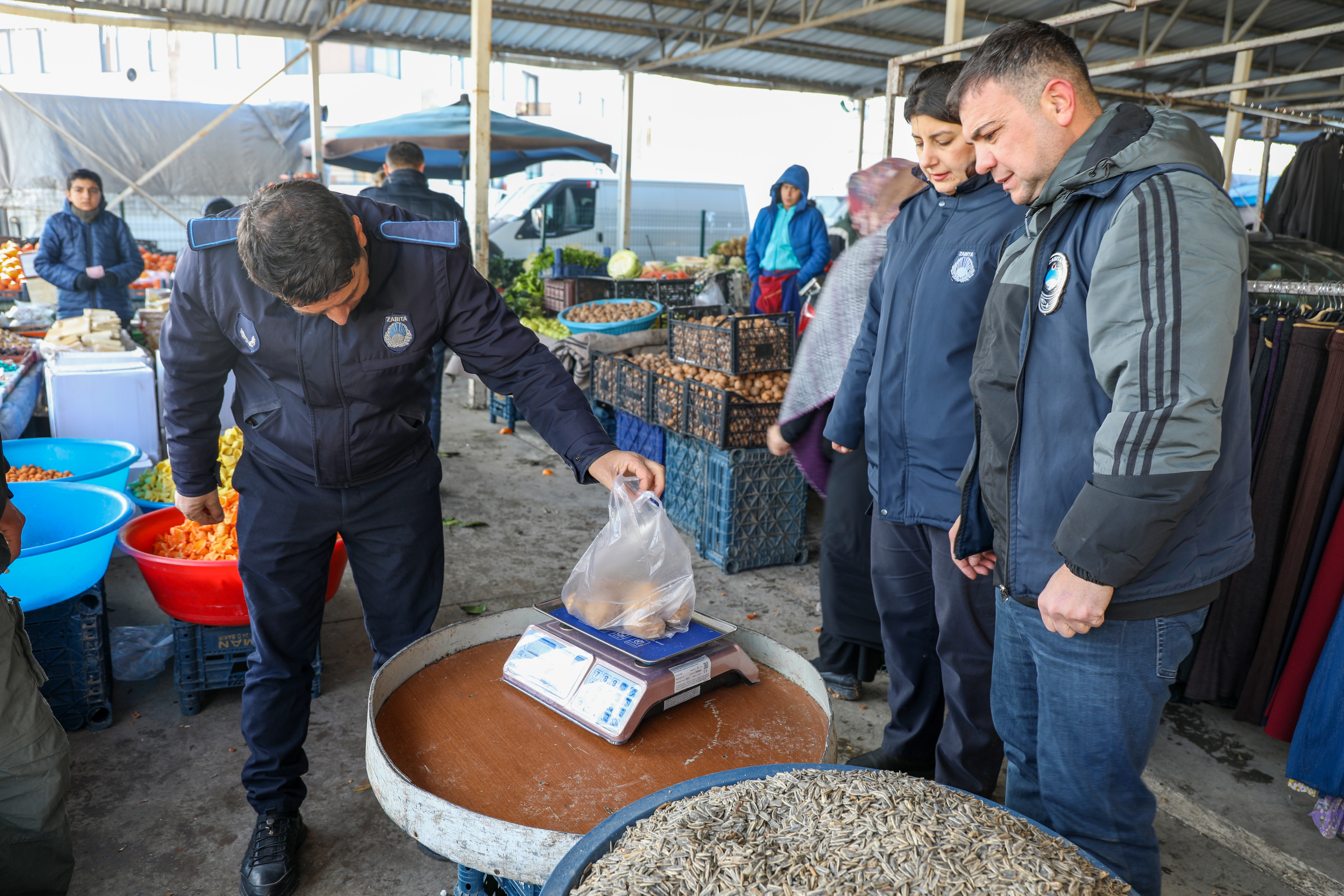 Ekîbê ma yê Mudirîyetê Zabita seba ke heqanê serfkeran bipawê, qadê bazarî ewle, pak û serûber bibê Bazarê Semtî yo Girewte yê Uçkuyu de kontrolî kerdê.